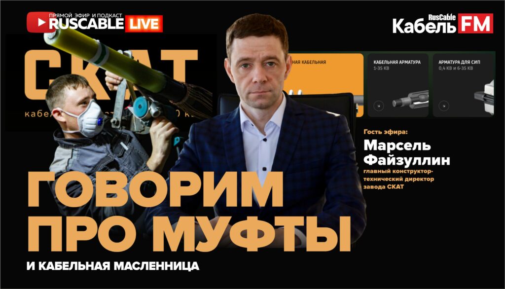 Вы хотите поговорить о муфтах? Мы хотим поговорить о муфтах. На фоне громкого проекта в котором СКАТ завершил монтаж кабельной арматуры напряжением 500 кВ мы поговорим с техническим директором компании Марселем Файзуллиным о рынке высоковольтной кабельной арматуры, подробнее посмотрим на производство, процессы и перспективы. Не пропустите специальное интервью в прямом эфире и обзор производства СКАТ в RusCable Live.